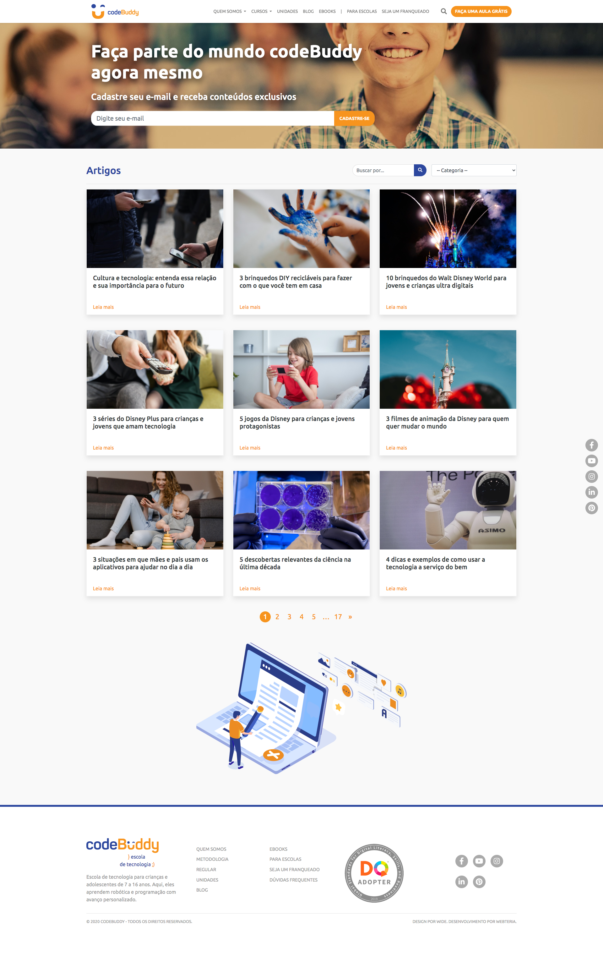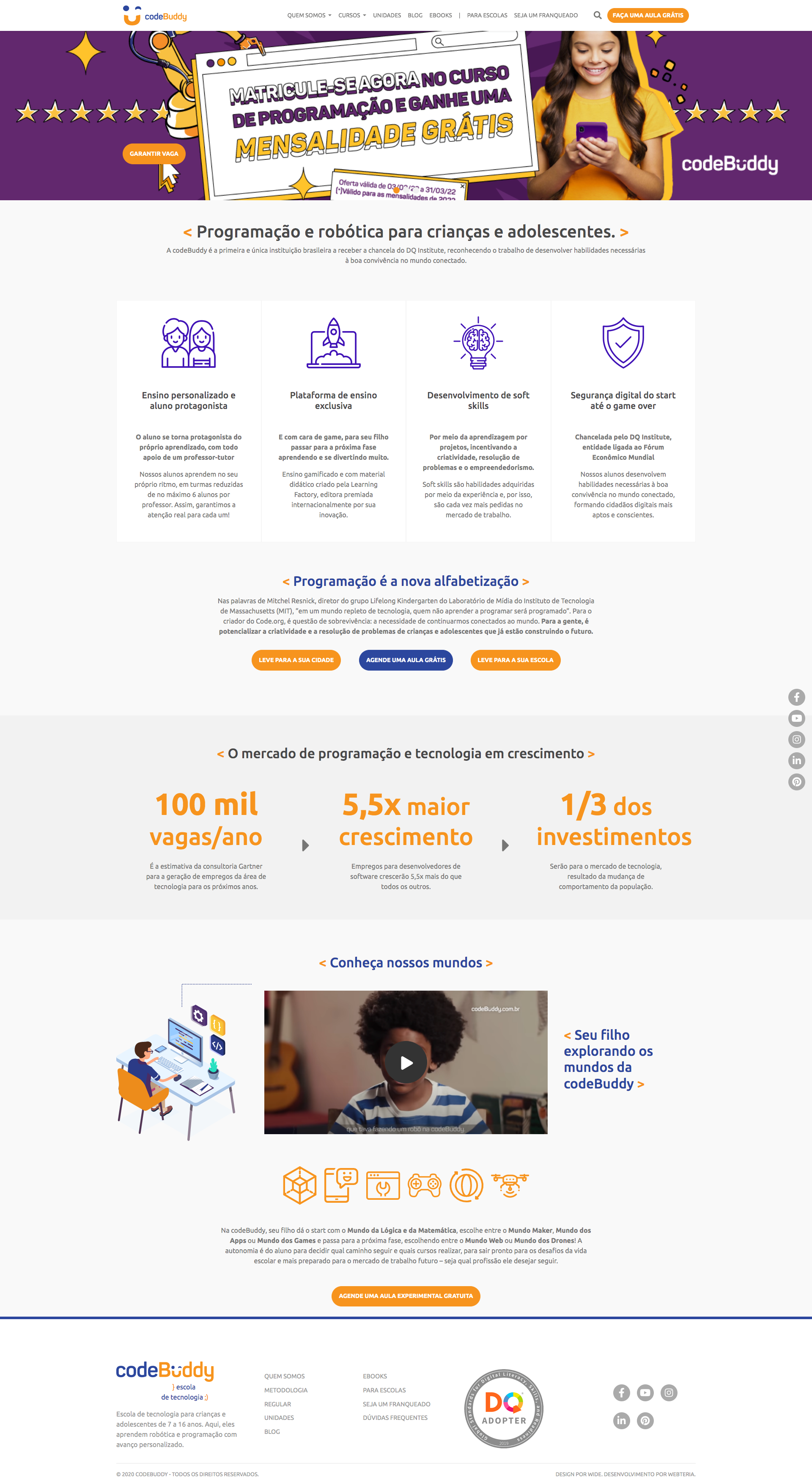 Em 2020 fomos convidados pela Cultural Inglesa para desenvolver o site da CodeBuddy, um curso de programação voltado para crianças com mais de 50 unidades espalhadas pelo Brasil!