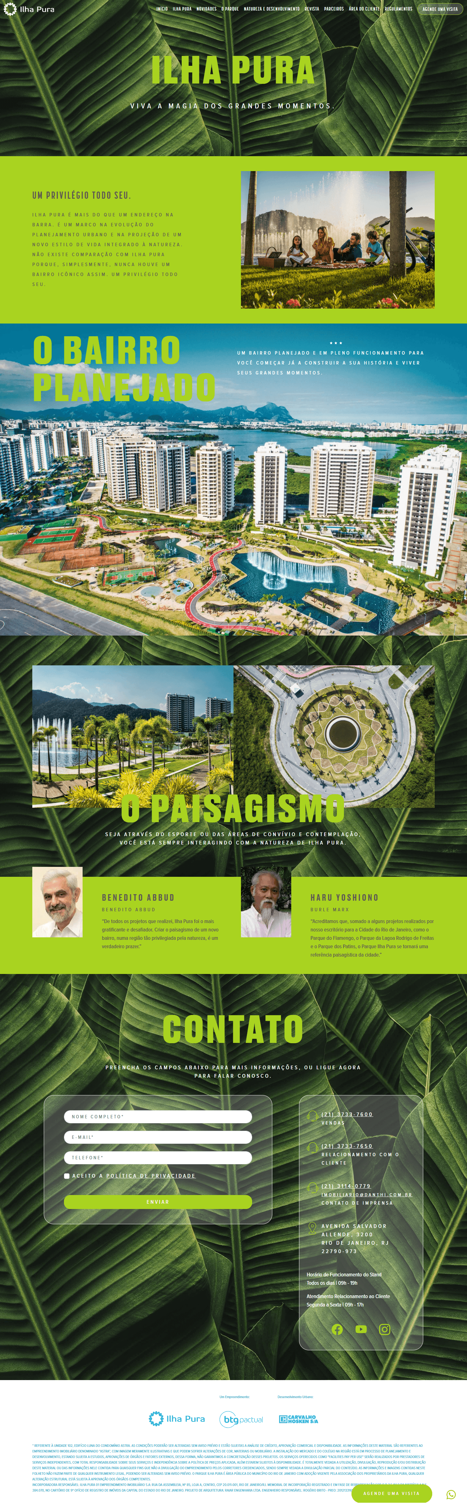 O Ilha Pura é um bairro planejado na Barra da Tijuca – Rio de Janeiro com uma dimensão urbana impressionante. Seu relançamento no mercado exigia não apenas uma mudança visual, mas uma transformação total na abordagem comercial. O objetivo deixou de ser apenas institucional para focar agressivamente na captação de leads e venda de unidades. A Webteria foi convocada para construir a peça central dessa estratégia: um ecossistema digital que unisse branding e performance.
