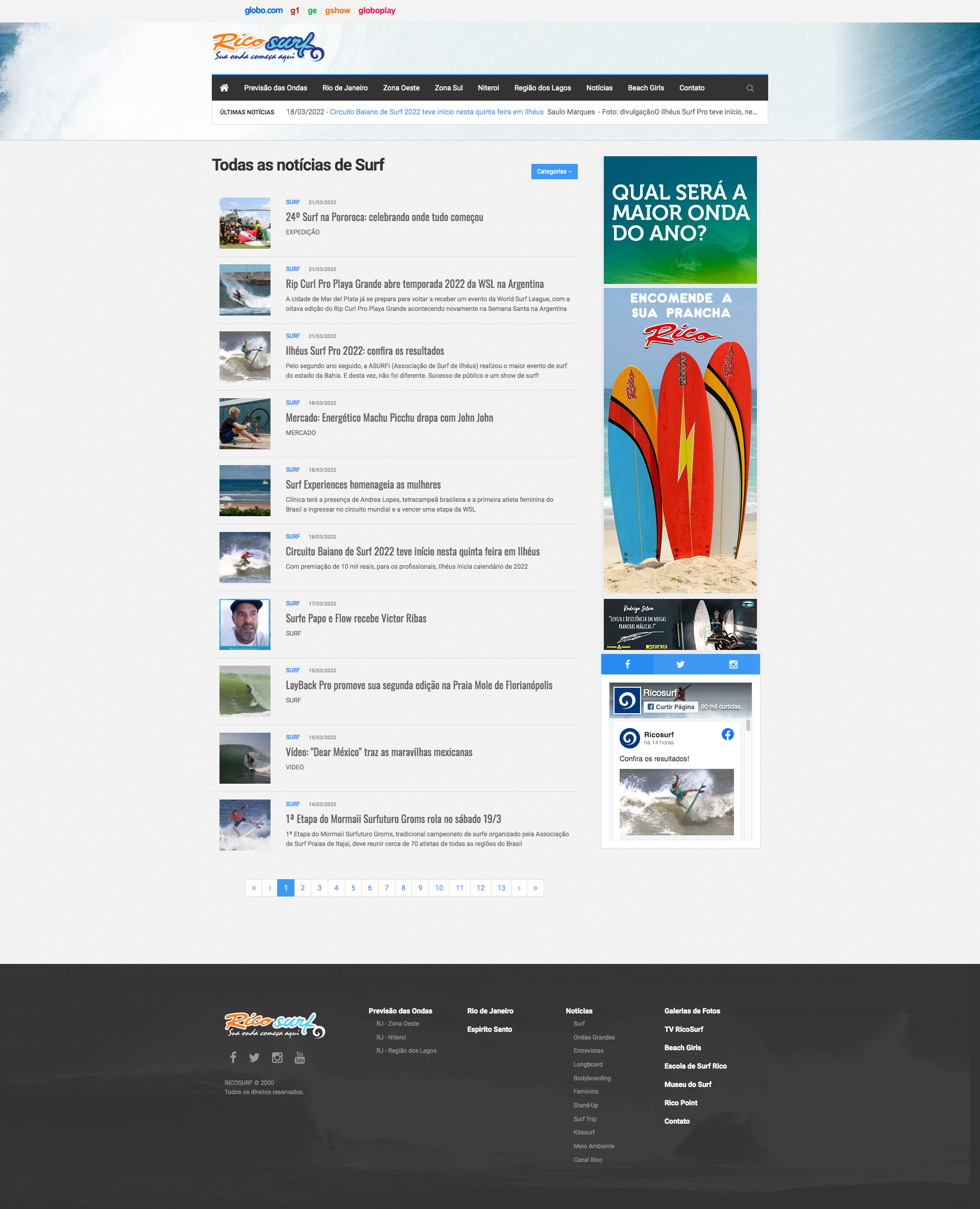 Em parceria com a Globo.com, Rico de Souza, pioneiro do Surf Brasileiro, passou para a Webteria um grande desafio: desenvolver a programação do novo site ricosurf.com, um dos sites de maior credibilidade no segmento.