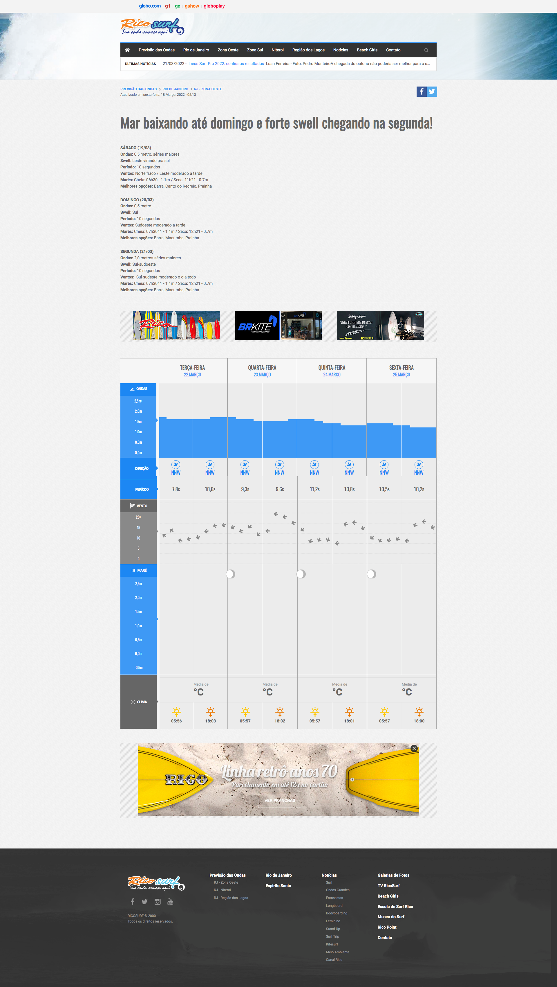 Para oferecer dados precisos de previsões meteorológicas e boletins das ondas, a Webteria desenvolveu um sistema que consolida diversas informações climáticas, além de câmeras ao vivo, onde os praticantes do surf recebem informações em tempo real de forma amigável e simples.